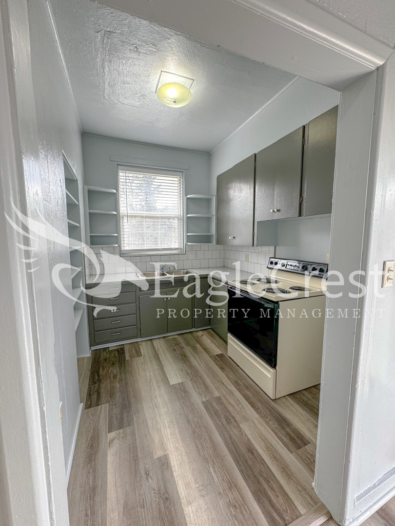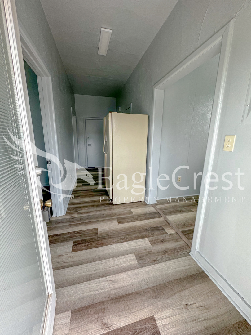 Welcome to this charming 2-bedroom, 1-bath home featuring a blend of hardwood flooring and luxury vinyl plank (LVP) that adds warmth and character throughout. The recently updated kitchen features modern countertops, a refrigerator, and an electric stove and oven.