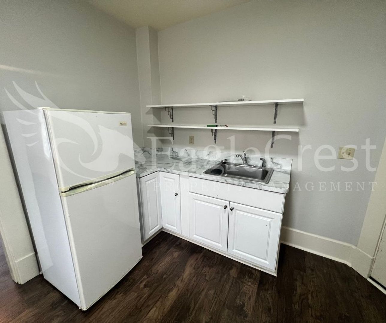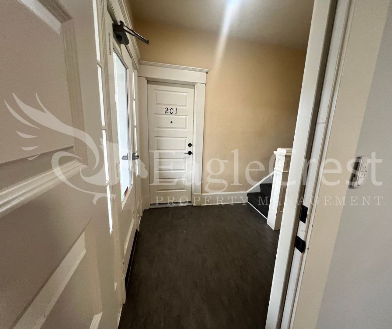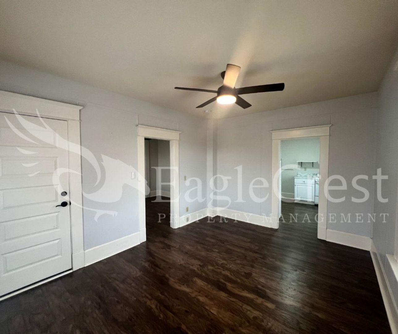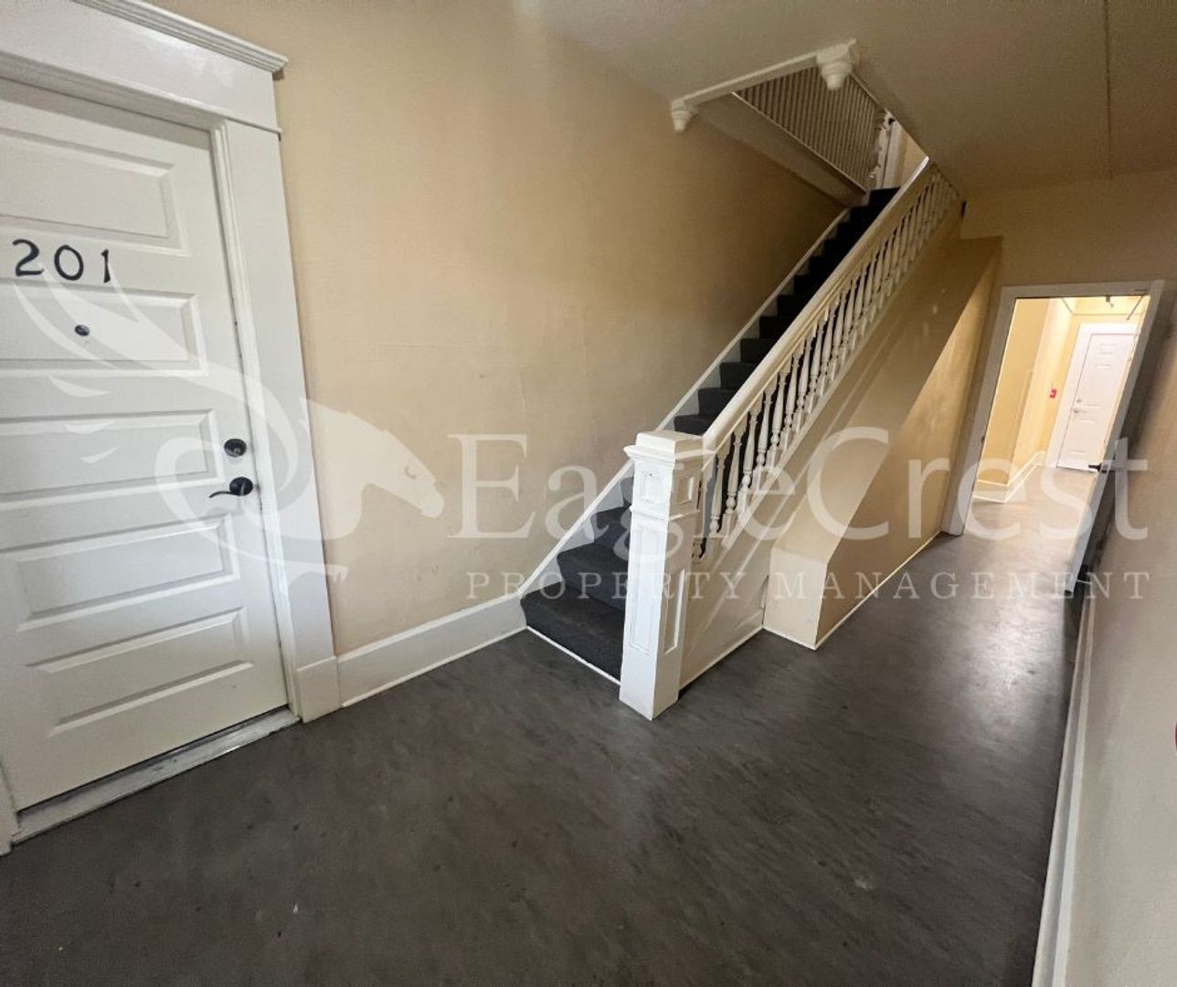 This nice size 1 bedroom, 1 bathroom apartment is located on the second floor and offers beautiful laminate flooring throughout along with updated light and fan fixtures. The living space includes balcony access, providing a comfortable extension of the home and a portable AC. The kitchen comes equipped with a refrigerator and electric stove, and residents have access to a shared, coin-operated laundry area on-site.