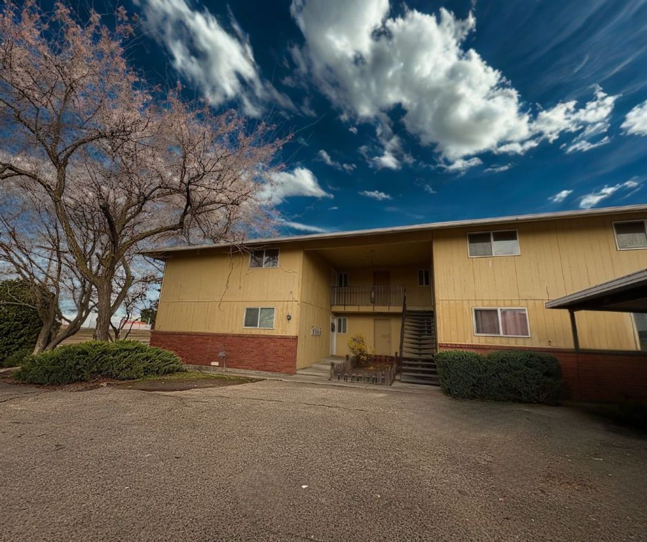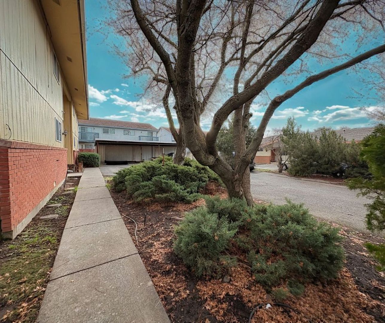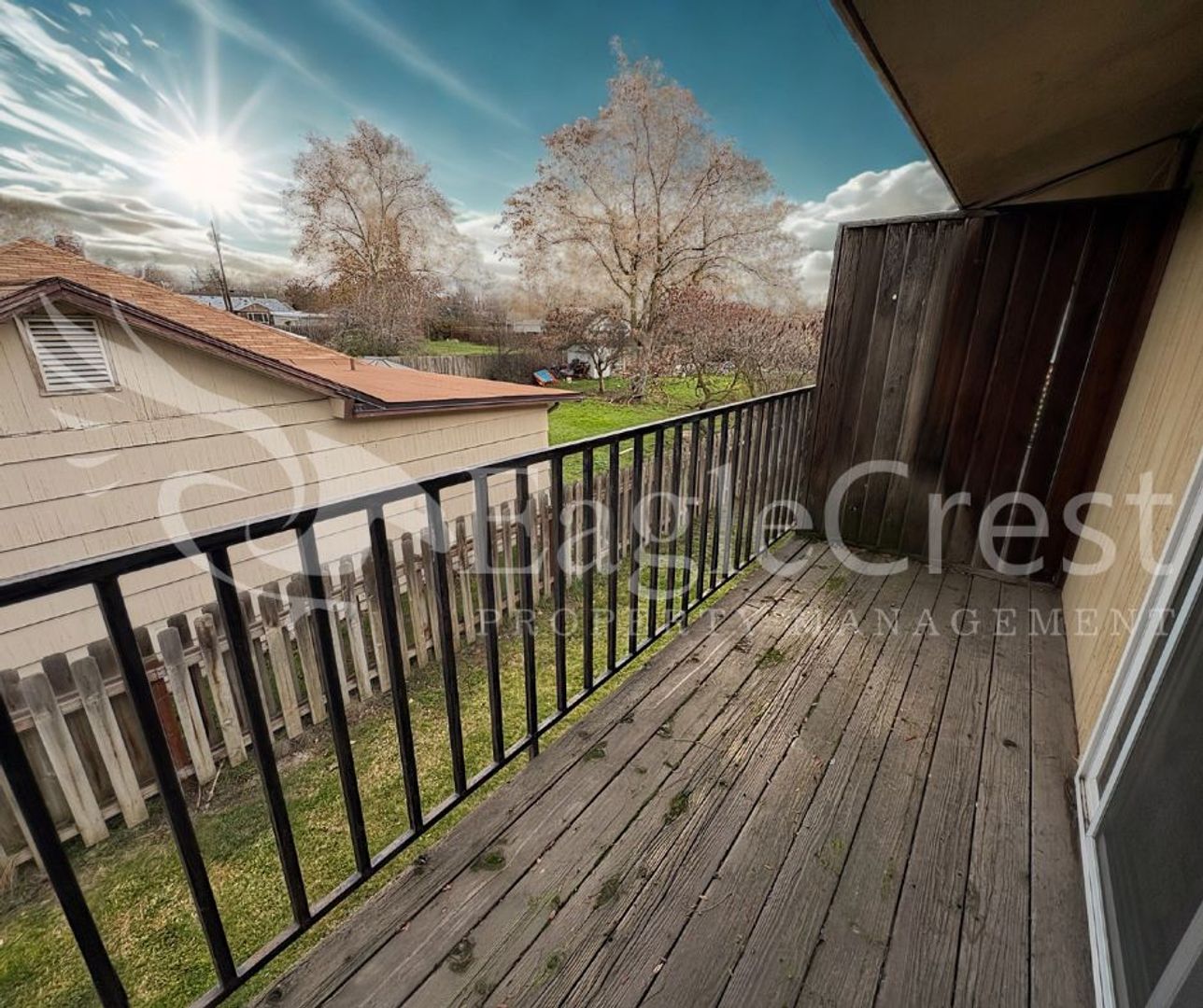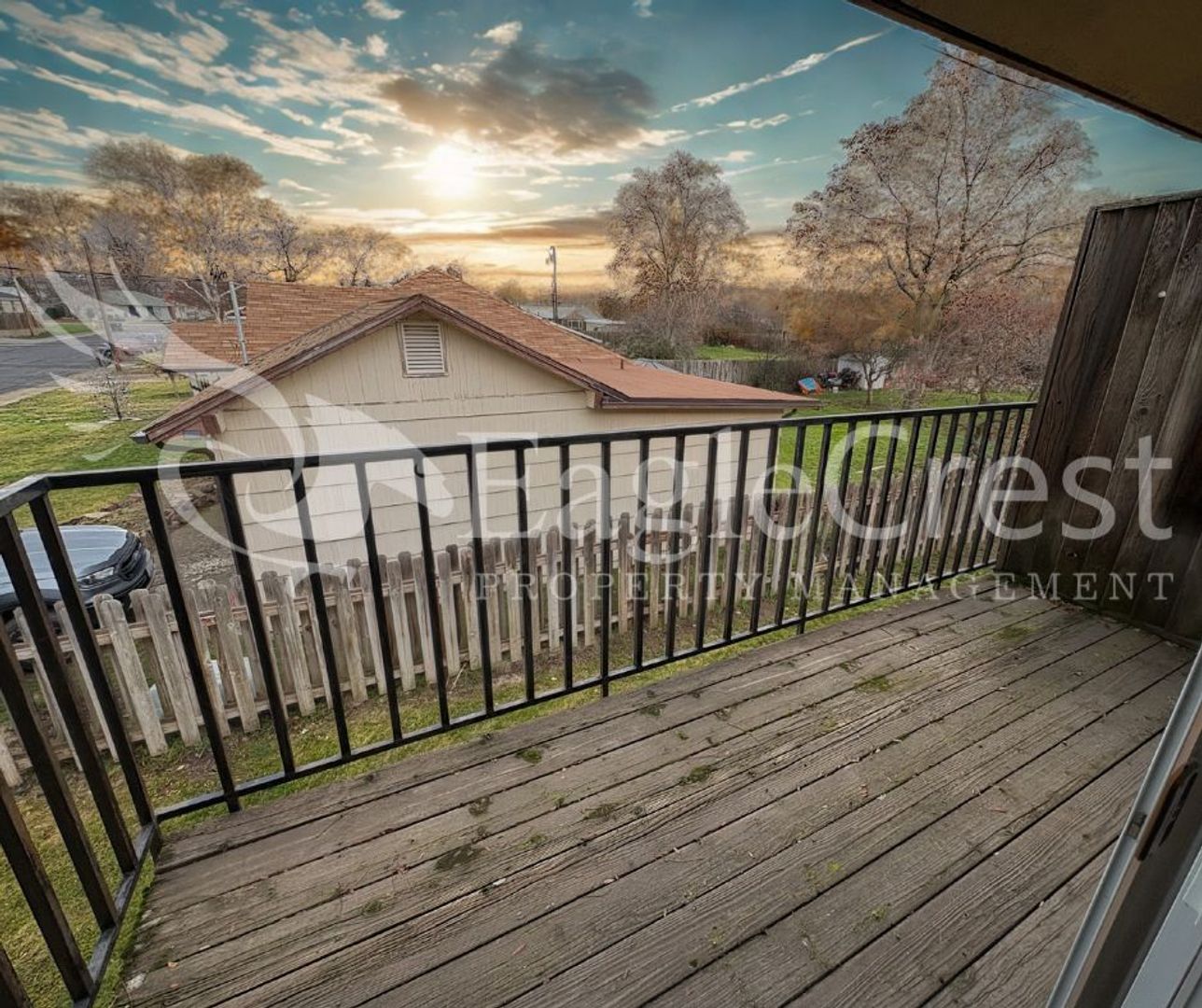 Step into this inviting 2-bedroom, 1-bath upstairs apartment featuring laminate flooring throughout, a spacious primary bedroom, and a full bathroom with updated fixtures and plenty of cabinetry for storage and a full tub/shower. The kitchen also offers generous cabinetry, epoxy countertops, and newer stainless steel appliances—including a refrigerator, dishwasher, electric stove, and hood range. Enjoy your own private balcony with a privacy wall, plus convenient amenities such as a shared laundry space, two personal storage units per unit, assigned carport parking for one car and plenty of on street parking for guests. Residents are responsible for electricity and a flat-rate fee of $75.00 for water, sewer, and garbage in addition to rent.